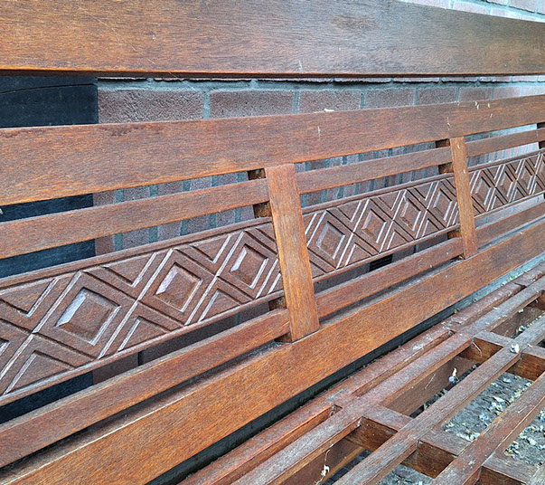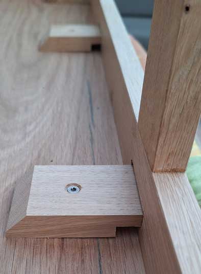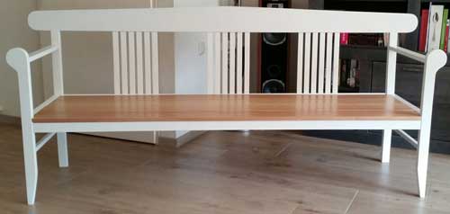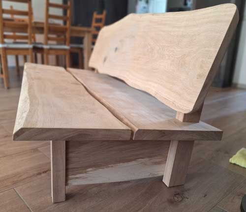 Hij moet nog in de olie en er komen natuurlijk kussens in. De gehele bank bevat 4 schroeven, dat zijn de schroeven waarmee het naamplaatje aan de voorzijde is bevestigd.