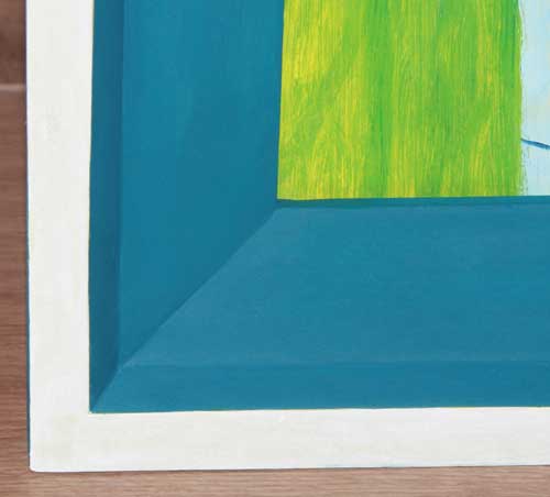 Schilderijlijst. MDF. De schuine kanten met het witte randje zorgt voor extra diepte. Zo krijg je de indruk dat het een lijst in een lijst is.