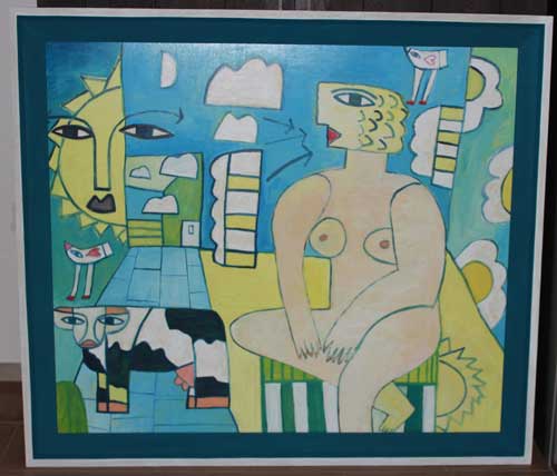 Schilderij is acryl op doek gemaakt door mijn dochter Luka Luinge als cadeau voor haar broer Joeri