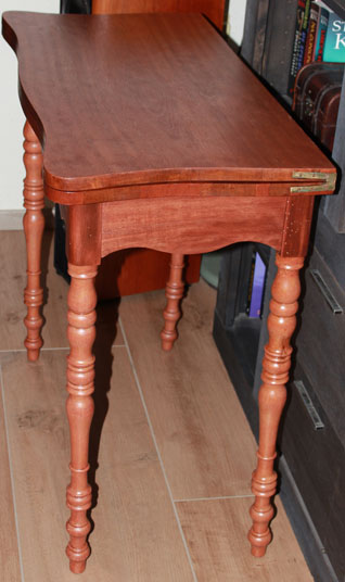 Dit antieke mahoniehouten kaarttafeltje heb ik voorzien van nieuw fineer. Het oude was helemaal aangetast door de houtworm.