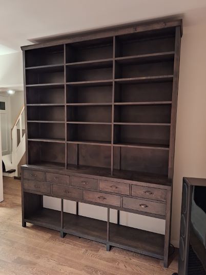 Bij een bestaande wandkast moest een extra kastje komen voor het wegwerken van bedrading e.d. (links op de foto)