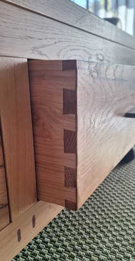 Lade front zit bevestigd met een verborgen zwaluwstaart