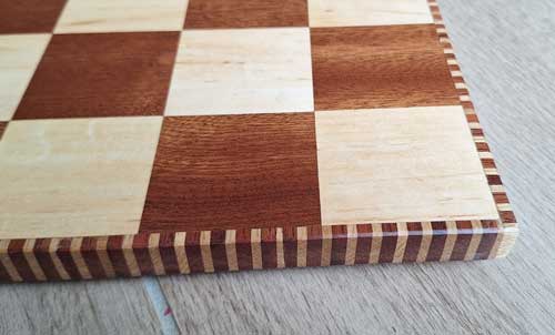 Samenwerkingsproject met Adriaan de Boer die de schaakstukken met de hand heeft gesneden uit meranti