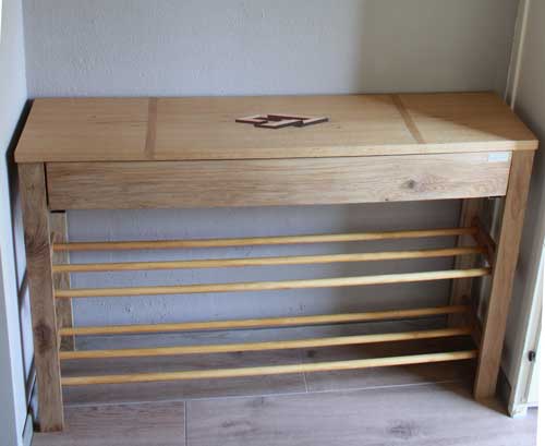 Schoenenkast van eikenhout. Het bovenblad is bewerkt met ingelegd fineer.