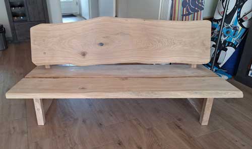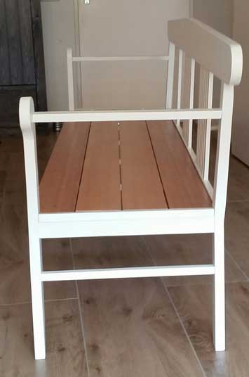 Hij moet nog in de olie en er komen natuurlijk kussens in. De gehele bank bevat 4 schroeven, dat zijn de schroeven waarmee het naamplaatje aan de voorzijde is bevestigd.