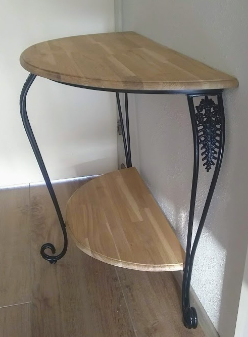 Bijzettafeltje. Vurenhout. 35 x 85 x 70 cm.