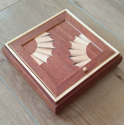 Sieraden kistje mahonie fineer. De waaier is van esdoorn.