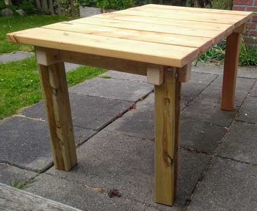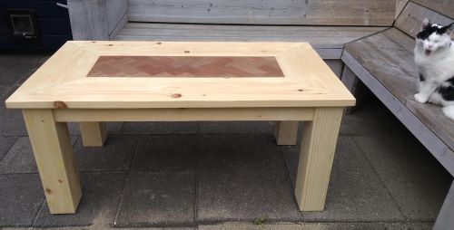 Tuintafel. Steigerhout met visgraatblad van Meranti