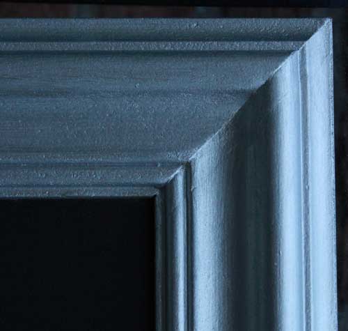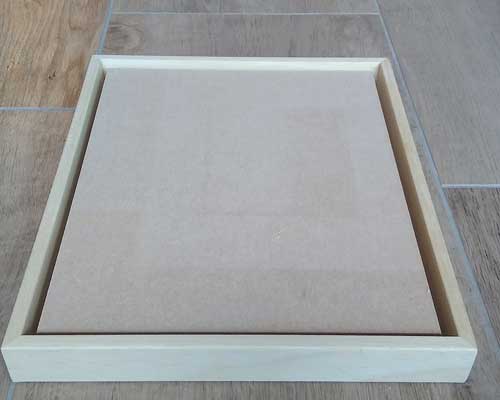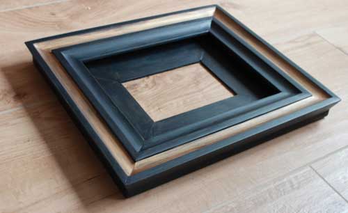 Schilderijlijst. MDF. De schuine kanten met het witte randje zorgt voor extra diepte. Zo krijg je de indruk dat het een lijst in een lijst is.