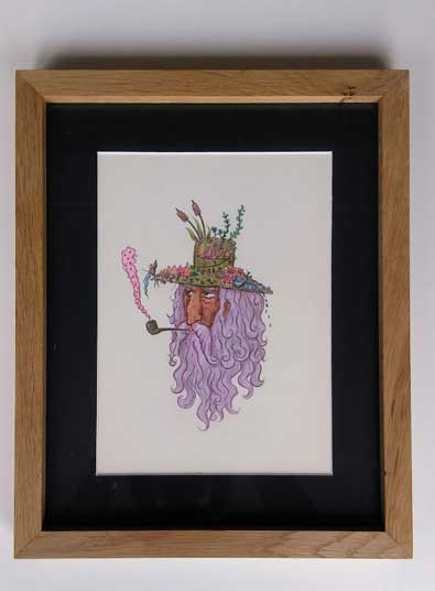 Bloklijst van eikenhout. Met glas en passe-partout.