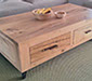 Salontafel gemaakt van oude eikenhouten herzaagde spoorbielzen
