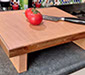 Bovenblad vah het tv meubel. Voor een speels effect is de kopse kant van hout verwerkt tussen de planken.