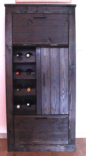 Het onderste vak is een lade, het middelste een kast en het bovenste vak is voorzien van een klep. ca. 140cm hoog.